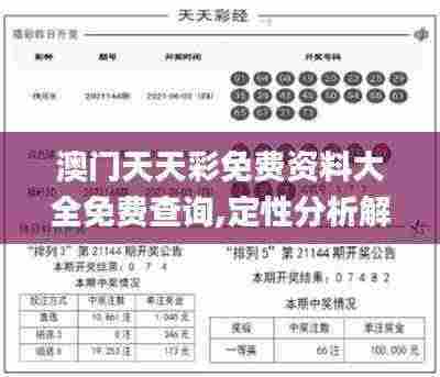 定性分析是一种研究方法,它侧重于对数据的非数值化描述和解释。在澳门天天彩免费资料大全中,定性分析主要应用于以下几个方面: