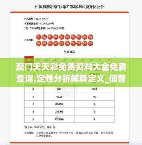 澳门天天彩免费资料大全为彩票爱好者提供了一个全面、免费的查询平台,帮助用户更好地参与到澳门天天彩的投注中。通过定性分析和免费的查询服务,用户可以更加深入地了解澳门天天彩的玩法和趋势,提高中奖概率。同时,随着彩票行业的不断发展