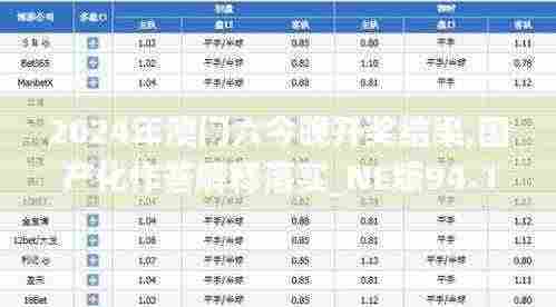 2024年澳门六合彩今晚的开奖结果已经揭晓,彩民们的心情随之起伏,而国产化彩票系统的发展不仅关乎彩票行业的未来,更与每一位彩民的切身利益紧密相连,随着国产化彩票系统的不断完善与进步,我们有理由相信,彩票行业将迎来更加美好的明天。
