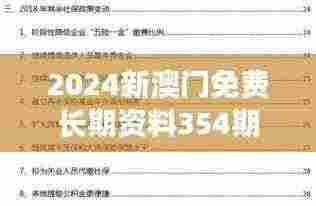 在开始深入探讨之前,首先需要对“2024新澳门免费长期资料354期”进行简要的概述。这份资料集合了上一年度至本年度澳门特别行政区遇到的问题以及相应的解决方案,不仅包括经济、社会领域,还涉及文化、环境保护等多个层面。这些资料包括政策文件、研究报告、统计数据等多种形式,旨在为澳门的长期发展提供坚实的数据支持和决策依据。