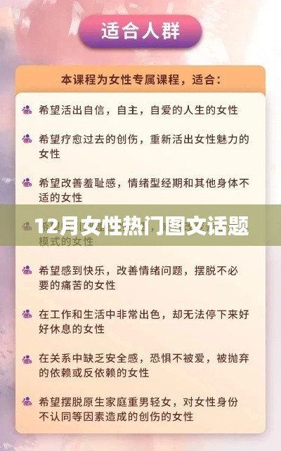 随着季节的转换,12月已悄然来临,在这个充满温馨与期待的月份,女性朋友们关注的焦点也在不断变化,涌现出许多热门图文话题,让我们一起探讨一下12月女性热门图文话题的各个方面。
