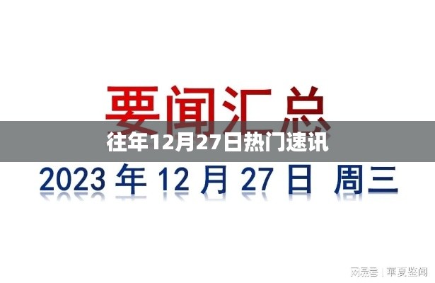 在往年12月27日这一天,全球范围内的各个领域都发生了许多热门事件和动态,科技领域的进步和发展为人们的生活带来了更多便利和惊喜;经济领域的波动和挑战为各国政府和企业带来了新的机遇和挑战;娱乐领域的明星和作品为人们带来了欢乐和享受;社会领域的热点问题和进步引发了人们的思考和关注;体育领域的赛事和明星为人们带来了激情与活力,展望未来我们将继续关注这些领域的动态和发展趋势为人们的生活和工作带来更多的便利和快乐。