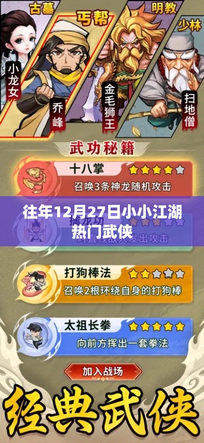 往年的12月27日,小小江湖中各大门派齐聚一堂,展开了一场惊心动魄的较量,华山论剑,各大门派掌门纷纷展示绝学,剑气纵横,震撼江湖,这一日,无数英雄豪杰在江湖中崭露头角,成为武林新星。