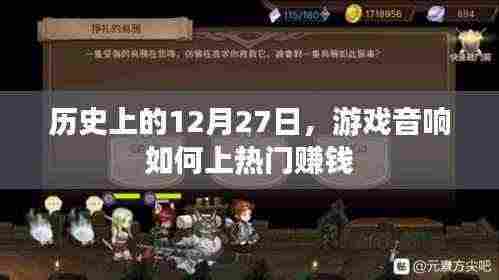 历史上的12月27日,或许有许多重要的日子值得纪念,而在当今的游戏行业,这一天同样充满了机遇与挑战,随着游戏产业的飞速发展,游戏音响作为游戏体验的重要组成部分,逐渐受到广泛关注,本文将探讨如何利用游戏音响上热门赚钱,为从业者提供策略和建议。