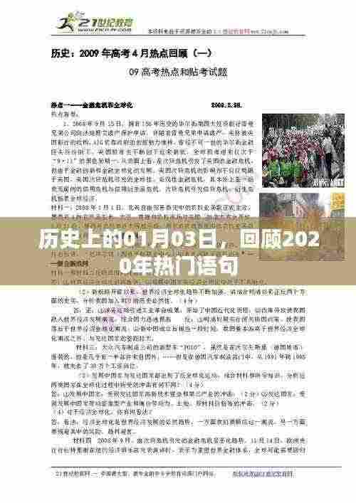 时光荏苒,岁月如梭,每年的1月3日,都在历史的长河中留下了独特的印记,本文将重点回顾2020年1月3日那些引人瞩目的时刻,以及在这一时期广泛传播的热门语句,这些语句不仅反映了当时的社会热点,也体现了人们对生活的感悟和追求。