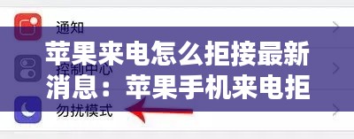 苹果手机的“勿扰模式”是一个强大的功能,可以帮助用户拒接不需要的来电。以下是开启和使用“勿扰模式”的步骤: