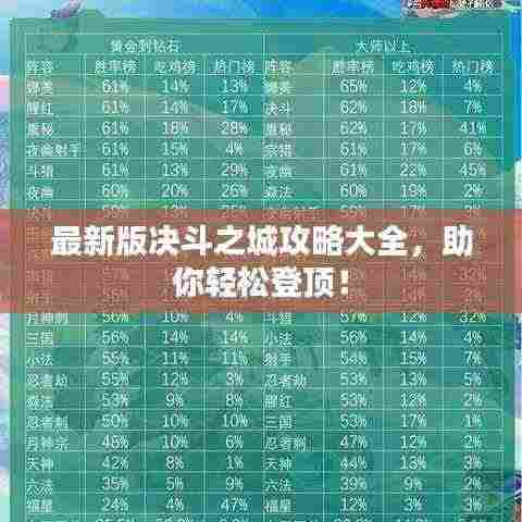 决斗之城是一款备受欢迎的卡牌游戏,吸引了众多玩家的加入,为了帮助广大玩家在游戏中取得更好的成绩,本文为大家带来一篇最新版决斗之城攻略,本攻略将从游戏概述、角色选择、卡牌组合、战术策略等方面进行全面介绍,希望能为玩家们提供一些有益的参考。