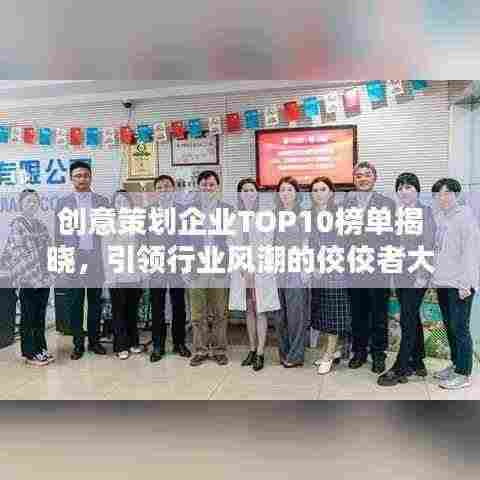 随着市场竞争的日益激烈,创意策划企业在推动品牌发展、提升市场影响力等方面发挥着举足轻重的作用,本文将为您介绍创意策划企业排名前十名,这些企业凭借出色的创意策划能力、丰富的实战经验及卓越的服务品质,在行业内树立了良好的口碑。
