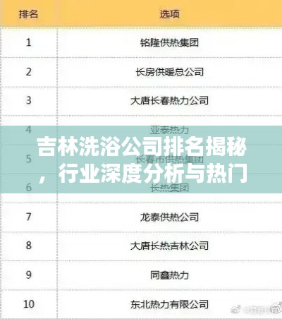 吉林省作为东北地区的重要省份,其洗浴文化源远流长,随着经济的发展和人们生活水平的提高,洗浴行业在吉林省得到了快速发展,本文将探讨吉林洗浴公司的排名及相关行业分析,以飨广大消费者和业界人士。