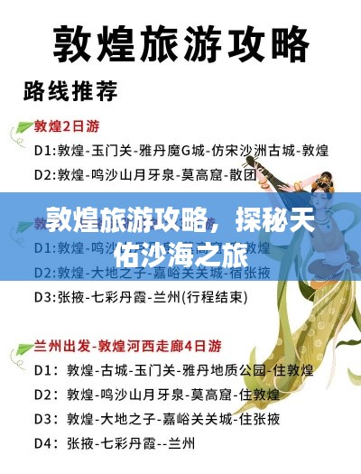 敦煌,这座沙漠中的璀璨明珠,自古以来就是丝绸之路上的一颗耀眼的宝石,我们就来一起探索敦煌,展开一场天佑沙海之旅,本篇攻略将带你领略敦煌的独特魅力,让你在旅途中充分感受到这座古城的韵味。