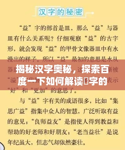 在日常生活中,我们应该多关注汉字的使用,提高自己的文化素养,当我们遇到不熟悉的字词时,不妨尝试一下“百度一下”,让搜索引擎成为我们学习汉字的好帮手,我们还应该通过各种途径,如阅读经典文献、参加文化活动等,加深对汉字文化的了解和认识。