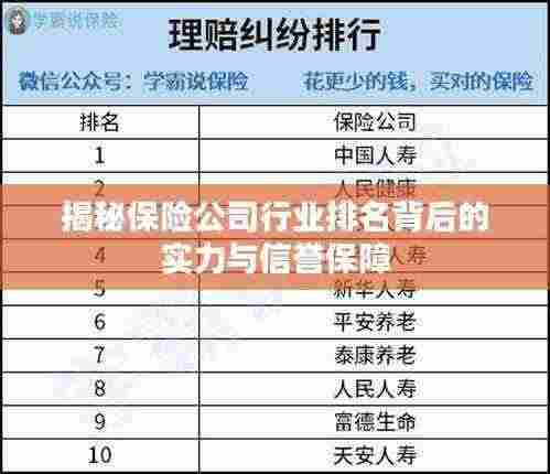 在当今社会,保险行业日益繁荣,各类保险公司层出不穷,对于消费者而言,选择一个有信誉、实力雄厚的保险公司至关重要,本文将探讨保险公司的合法行业排名,以帮助消费者更好地了解各公司的实力与地位。