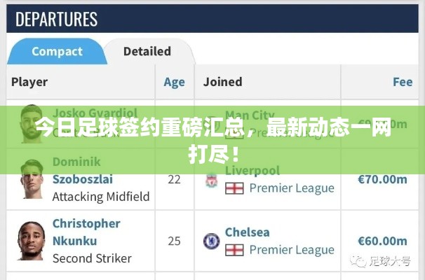 随着夏季转会市场的逐渐开启,全球各大足球俱乐部都在积极寻求签约新球员的机会,足球世界的每一个角落都充满了活力和竞争,而最新的签约消息更是引发了广大球迷和媒体的关注,本文将为您带来今日足球签约的最新汇总。