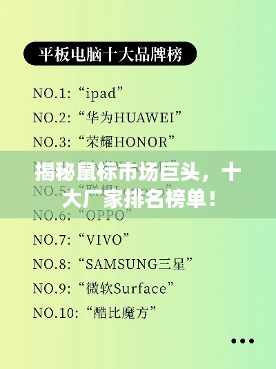 随着科技的飞速发展,电脑周边设备也在逐渐升级改进,鼠标作为电脑的重要配件之一,其品质与体验直接关系到用户的使用感受,本文将为您介绍鼠标厂家前十名排名,带您了解这一领域的领军企业。