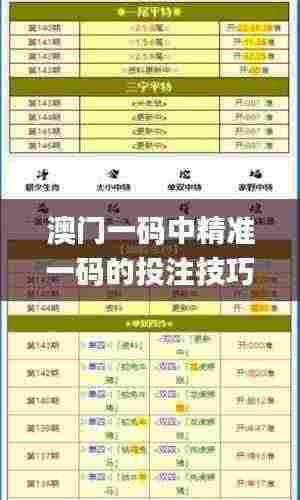 “澳门一码中精准一码”是指在博彩游戏中,玩家根据自身的统计分析,选择并投注一个特定的号码,旨在提高中奖的概率。该策略不仅依赖于玩家的直觉和运气,更重要的是需要合理的数据分析与统计。
