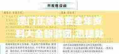为进一步提升澳门旅游服务质量,确保游客在澳门的旅游体验更加顺畅、安全,特制定本指南,主要针对澳门正版免费全年资料大全旅游团的服务和问题处理机制进行系统解答,以便于游客在行程中遇到问题时能够迅速得到解决。