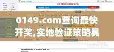 在如今数字化迅猛发展的时代,网络为我们提供了更多获取信息的途径。而在彩票领域,玩家们越来越倾向于使用网上平台进行查询和验证。其中,0149.com查询最快开奖,实地验证策略具体,成为了许多玩家热议的话题。本文将深入探讨这一平台的功能及其带来的益处,帮助玩家们更好地利用这一资源,提高购彩体验。