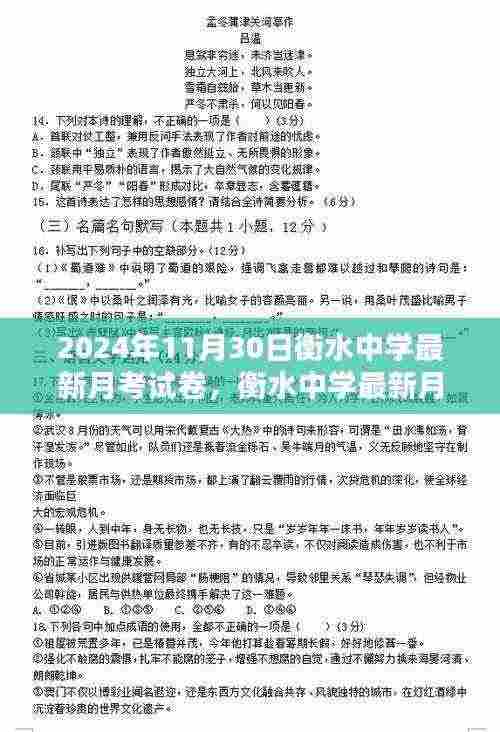 随着教育教学的深入推进,衡水中学始终走在教育改革的前沿,作为全国知名的学府,衡水中学的教学质量和学生综合素质备受关注,本文将重点围绕该校最新月考试卷,即2024年11月30日版,进行深入解析,以期帮助师生更好地把握教学方向,促进学生全面发展。