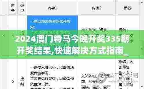 2024澳门特马今晚开奖335期开奖结果一直吸引着不少彩民的关注。在这个充满期待的时刻,许多人都希望能够找到快速解决方式,以便及时获取最新的开奖结果。无论是传统的查询方式还是现代的数字化技术,正确的操作都能让你迅速了解到2024澳门特马今晚开奖335期开奖结果,从而做出相应的投注选择。