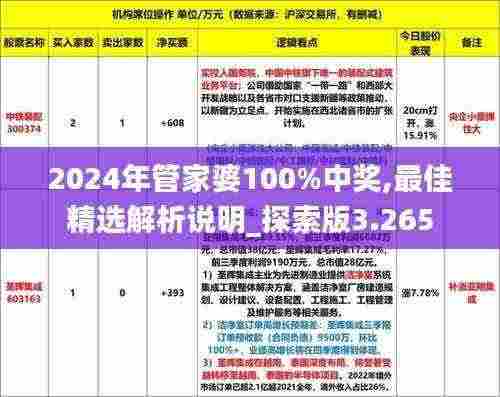 随着智能化时代的推进,“管家婆”已经成为家庭服务行业的热门话题。“2024年管家婆100%中奖”的理念体现了对未来发展的一种期许与激励,在探索版3.265中我们将继续积极探索和发展以智慧便捷安全为使命的管家婆以满足人们对于美好生活的追求与向往。