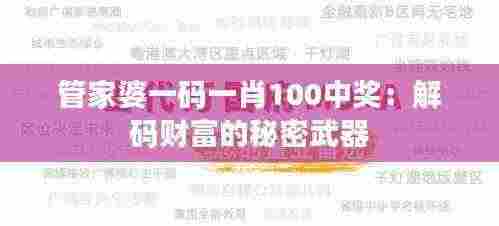 在现代社会,许多人梦想通过某种方式迅速积累财富,实现财务自由和经济独立,这种心态往往容易被不法分子利用,推动了一些非法投资、赌博活动的兴起,管家婆一码一肖”便是其中之一,这篇文章旨在揭示这种“财富秘诀”背后的真相,讨论如何在合法合规的前提下实现财富增长。