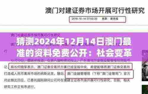 2024年12月14日澳门最准的资料免费公开,不仅是信息公开的举措,更是推动社会进步和变革的重要行动,我们期待这一政策能够有效实施,并在澳门乃至更广阔的范围内产生深远的影响。