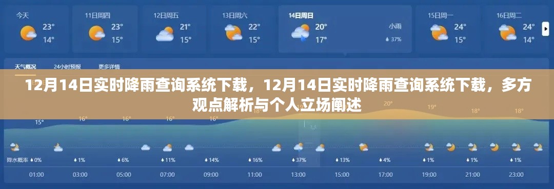 随着科技的进步和气象需求的日益增长,实时降雨查询系统成为了公众关注的焦点,特别是在临近重要活动或出行计划时,了解实时的天气状况显得尤为重要,本文将围绕“12月14日实时降雨查询系统下载”这一主题展开讨论,旨在从不同角度审视其优劣,阐述个人观点。