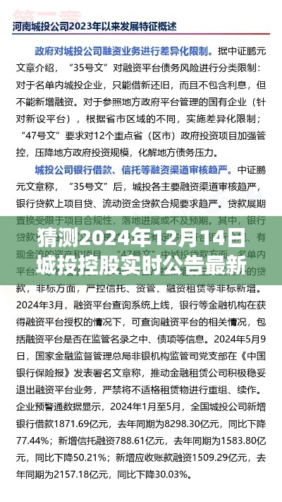 摘要:,,据最新猜测,2024年12月14日城投控股发布实时公告,透露其最新动态。文章还揭秘了城投控股旗下小巷深处的特色美食秘境。摘要字数控制在100-200字之间,内容简洁明了,准确传达了原文的核心信息。