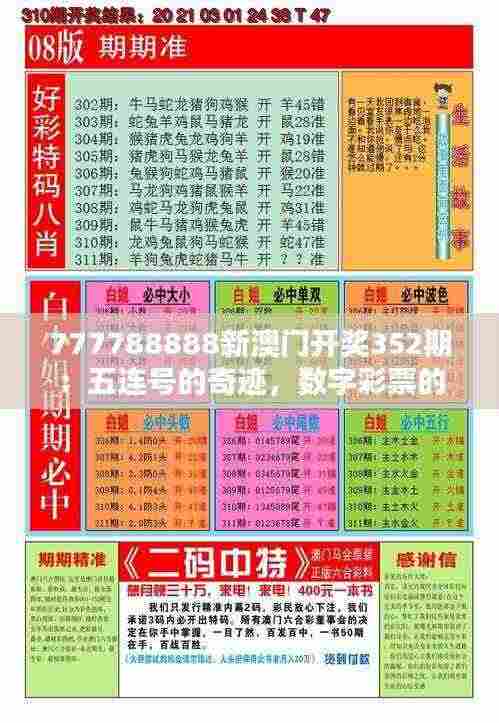 人们通常关注彩票的数字组合,但数字背后的故事和智慧往往更为深刻,777788888新澳门开奖352期五连号现象,引发了人们对数字彩票背后深层次意义的探究,这种分析有助于我们了解彩票的本质,认识到数字彩票对于社会和文化的影响。