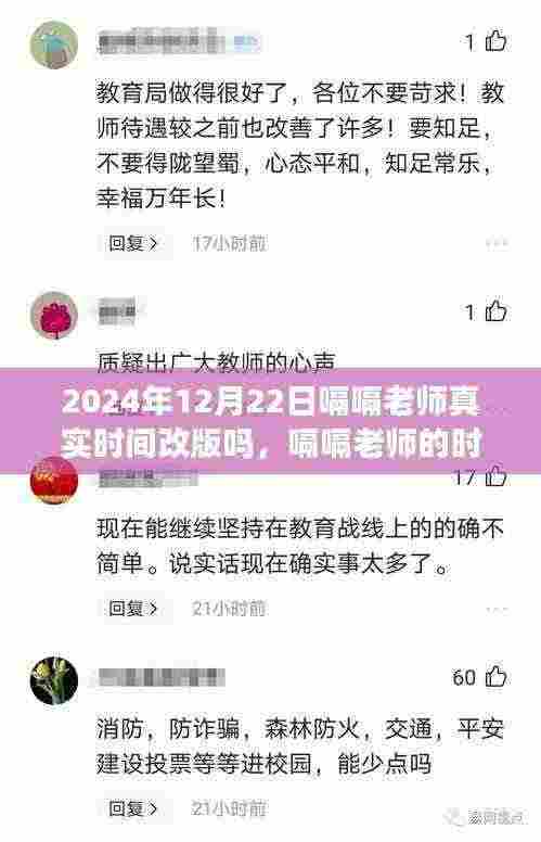摘要:在2024年12月22日,嗝嗝老师将进行时间改版,以其独特的时间魔法带来一场温馨的日常改编之旅。此次改版将展现嗝嗝老师如何利用时间进行创新和改变,为观众带来全新的体验。这场旅行将充满惊喜和感动,展现时间的无限可能。