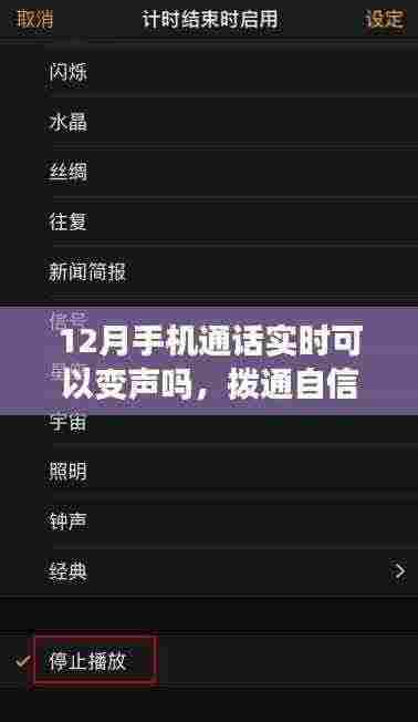 让我们一起努力,用学习带来的自信和成就感点亮我们的十二月,让手机通话实时变声成为我们生活中的一道亮丽的风景!让我们在每一次通话中都能找到乐趣和成长的机会,让自信和幽默成为我们生活的常态!