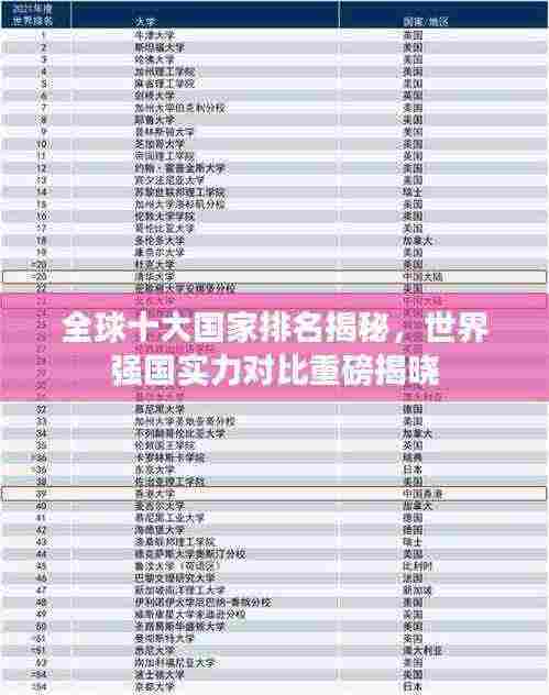 随着全球化的不断发展,各国在经济、科技、文化等领域的竞争日益激烈,本文将为您揭晓全球国家排名前十名,带您了解世界强国的实力对比。