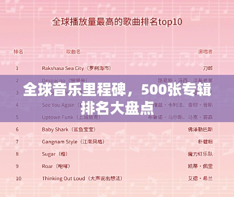世界500张专辑排名是根据专辑的影响力、销量、口碑等多个因素综合评选出的音乐史上的重要里程碑,这些专辑涵盖了多种音乐风格,包括流行、摇滚、嘻哈、电子等,这些专辑不仅代表了音乐艺术的高度,更是时代精神的见证。