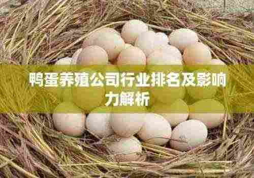 在中国的养殖业中,鸭蛋养殖产业占有不可忽视的地位,随着市场需求的不断增长,众多鸭蛋养殖公司纷纷崭露头角,本文将介绍一些在鸭蛋养殖行业中表现突出的公司,并探讨它们的排名及影响力。