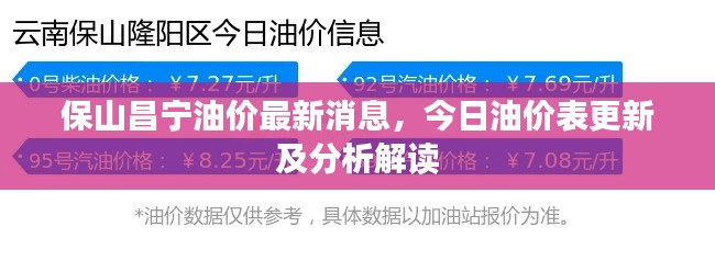 根据最新数据,保山市昌宁县今日油价有所调整,具体油价表更新情况如下: