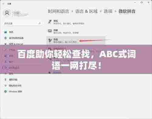通过百度的帮助,我们可以轻松查找到许多ABC式的词语,这些简洁明了的词语不仅丰富了我们的语言,还使我们的生活更加便捷,学习ABC式的词语,不仅可以扩大我们的词汇量,还有助于我们更好地理解和运用英语,希望这篇文章能让你对ABC式的词语有更深入的了解,也希望你能在日常生活中多加运用,不断提高自己的语言能力。