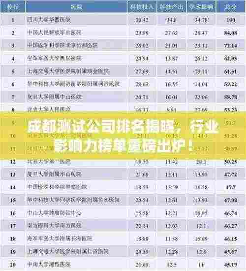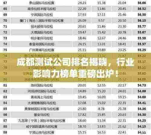 随着科技的飞速发展,软件测试行业逐渐崭露头角,成为信息技术领域不可或缺的一环,作为西部地区的科技重镇,成都的测试公司在国内外享有盛名,本文将探讨成都测试公司的排名及其在行业中的影响力。