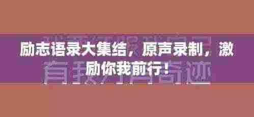 在人生的旅途中,我们时常需要一些励志的话语来鼓舞自己,激发内在的潜能,这些语录,如同明灯,指引我们在困境中前行,我们将为您呈现一份励志原声录制语录大全,希望能为您带来力量与希望。