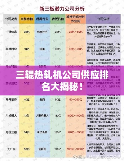 在金属加工领域,三辊热轧机扮演着举足轻重的角色,随着工业的发展,市场上涌现出众多供应三辊热轧机的公司,它们提供的设备性能、质量以及服务都各有特色,本文将为您介绍当前市场上供应三辊热轧机的公司排名,以帮助您更好地了解并选择适合的企业。