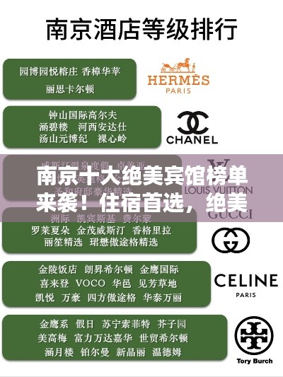 南京,这座古老与现代交融的城市,以其深厚的历史底蕴和繁华的现代气息吸引着世界各地的游客,在这座美丽的城市中,宾馆酒店众多,各具特色,本文将为您介绍南京最美的宾馆排名前十名,让您在选择住宿时更加得心应手。