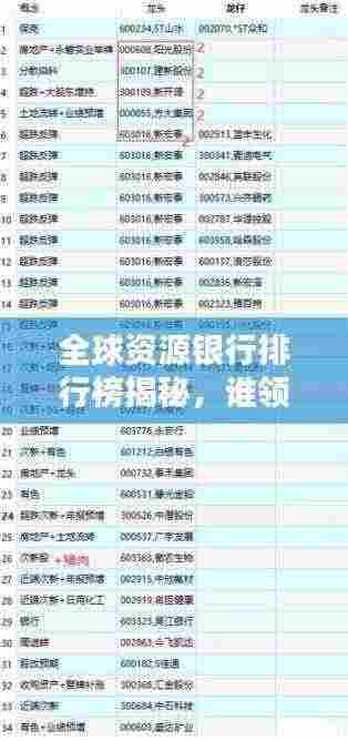 随着全球经济的发展,资源银行的竞争也日益激烈,在这篇文章中,我们将探讨世界资源银行的排名情况,分析这些银行的实力、特点以及在全球资源领域的地位。
