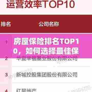 房屋保险是保障财产安全的重要方式之一,在选择房屋保险时,要了解市场上的排名前十名的保险计划和公司,根据自己的需求选择合适的保险计划,在购买保险时要注意保额、免责条款等方面的问题,确保自己购买的保险能够真正发挥保障作用。