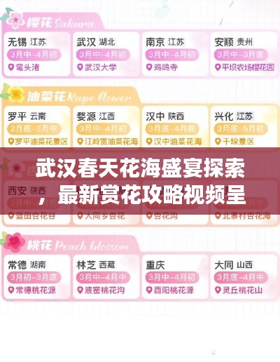 春天,万物复苏的季节,武汉这座美丽的城市更是迎来了花的盛宴,随着气温逐渐回升,武汉各大公园、街道和景区的花朵竞相绽放,形成一道道美丽的风景线,本文将为你带来武汉最新赏花攻略视频,带你探索春天的花海盛宴。