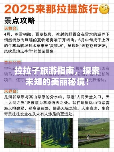 拉拉子,这个充满魅力的地方,以其独特的自然风光和丰富的旅游资源吸引着无数游客,本篇文章将为您提供一份详尽的拉拉子旅游攻略,帮助您更好地了解这个地方,更好地规划您的行程。