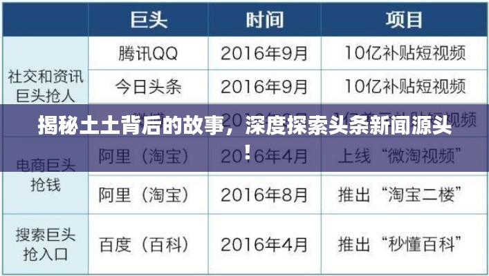 头条新闻中的“土土”现象反映了社会的变化和公众的需求,本文通过分析其背后的原因和影响,旨在为读者揭示这一现象的真相,我们也期待未来与“土土”相关的内容能够在头条新闻中继续发展,为公众提供更多真实、有趣的信息。