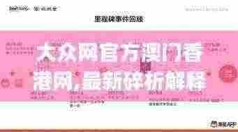 大众网官方澳门香港网,最新碎析解释说法_SIK92.347未来版