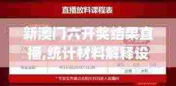 主旨:新澳门六开奖结果直播的实施方案及相关统计资料的解读