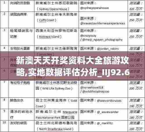 近年来,随着旅游业的迅速发展,越来越多的游客选择前往澳大利亚和新西兰等地旅游。为了帮助广大旅游者更好地规划行程,本文对“新澳天天开奖资料大全”相关信息进行了系统的整理和评估。同时,我们结合实地数据分析,对旅游攻略进行了深入探讨,旨在为游客提供更加详尽与实用的参考。