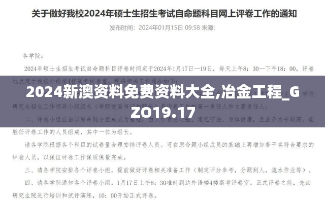 随着全球冶金工程技术的不断进步,冶金工程领域的研究和实践愈显重要。为了促进冶金工程的科研创新与技术应用,提高资源的有效利用和环境保护意识,特发布本政策文件,旨在指导相关单位和个人参考“2024新澳资料免费资料大全”,为冶金工程的发展提供有益支持。