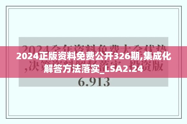 “2024正版资料免费公开326期,集成化解答方法落实_LSA2.24”的发布,标志着我单位在知识共享和推广方面的新一步,也寄希望于更多的人能够从中受益。在今后的工作中,我们将继续努力,为各类事业单位和公众提供更多优质的学习资源与支持。